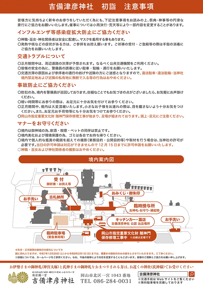 - ◆新春の開閉門時間および祈祷受付時間・授与所開閉時間について